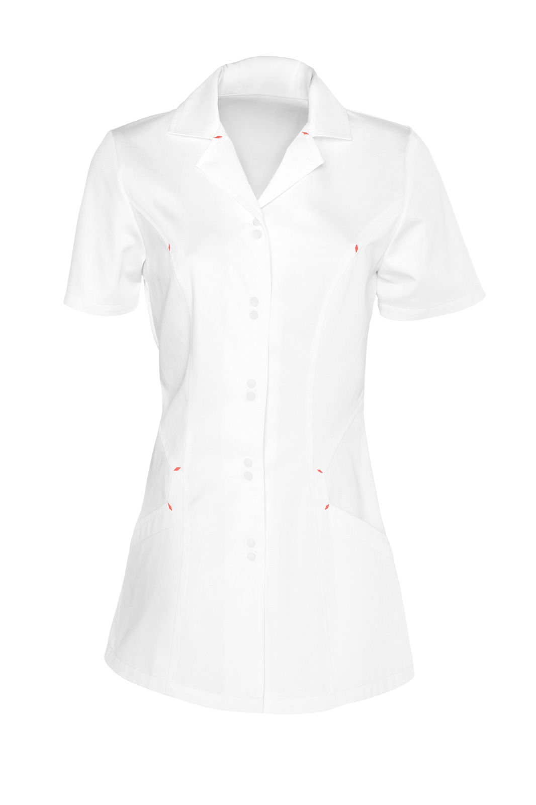Princesového střihu, celopropínací na druky a krátkým rukávem. Rozhalenka, na předním díle dvě ozdobné kapsy a barevná výšivka.