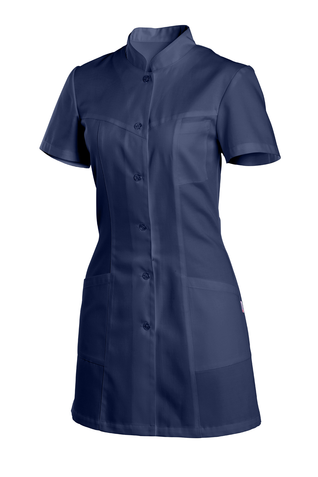 Prodloužená princesového střihu se stojáčkem a krátkým rukávem. Celopropínací s předním i zadním sedlem. Na předním díle tři našité kapsy.