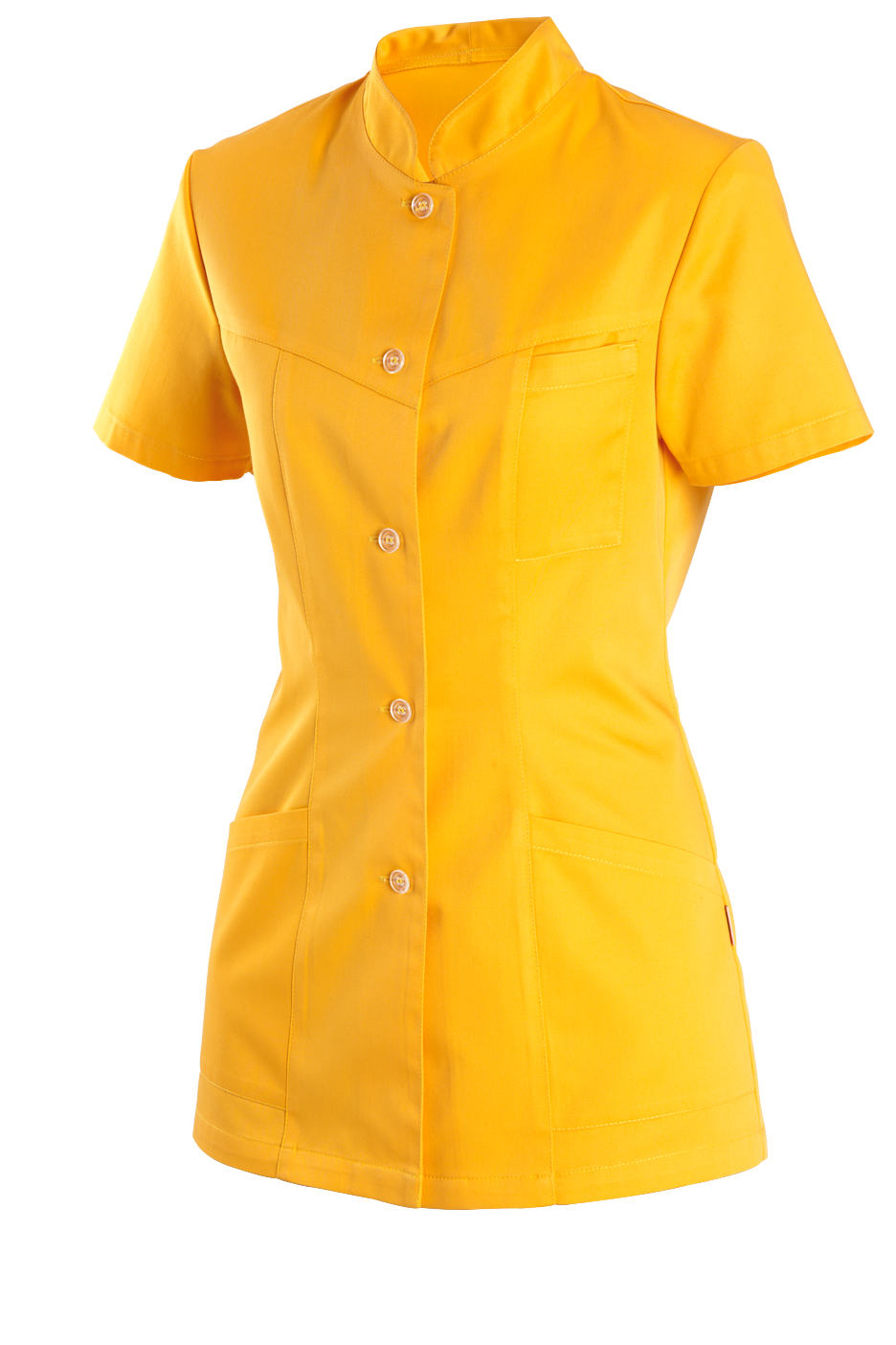 Princesového střihu se stojáčkem a krátkým rukávem. Celopropínací s předním i zadním sedlem. Na předním díle našité tři kapsy.