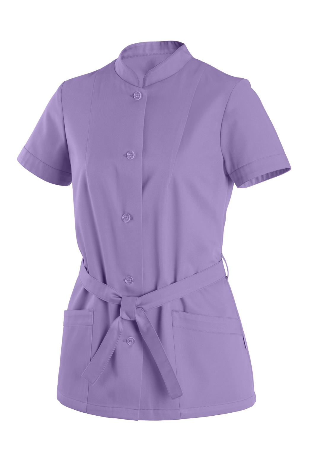 Volného střihu se stojáčkem a lemovaným rukávem. Celopropínací, v pase s vázačkou a prsní ramenní záševky. Na předním díle dvě našité kapsy s lemováním.