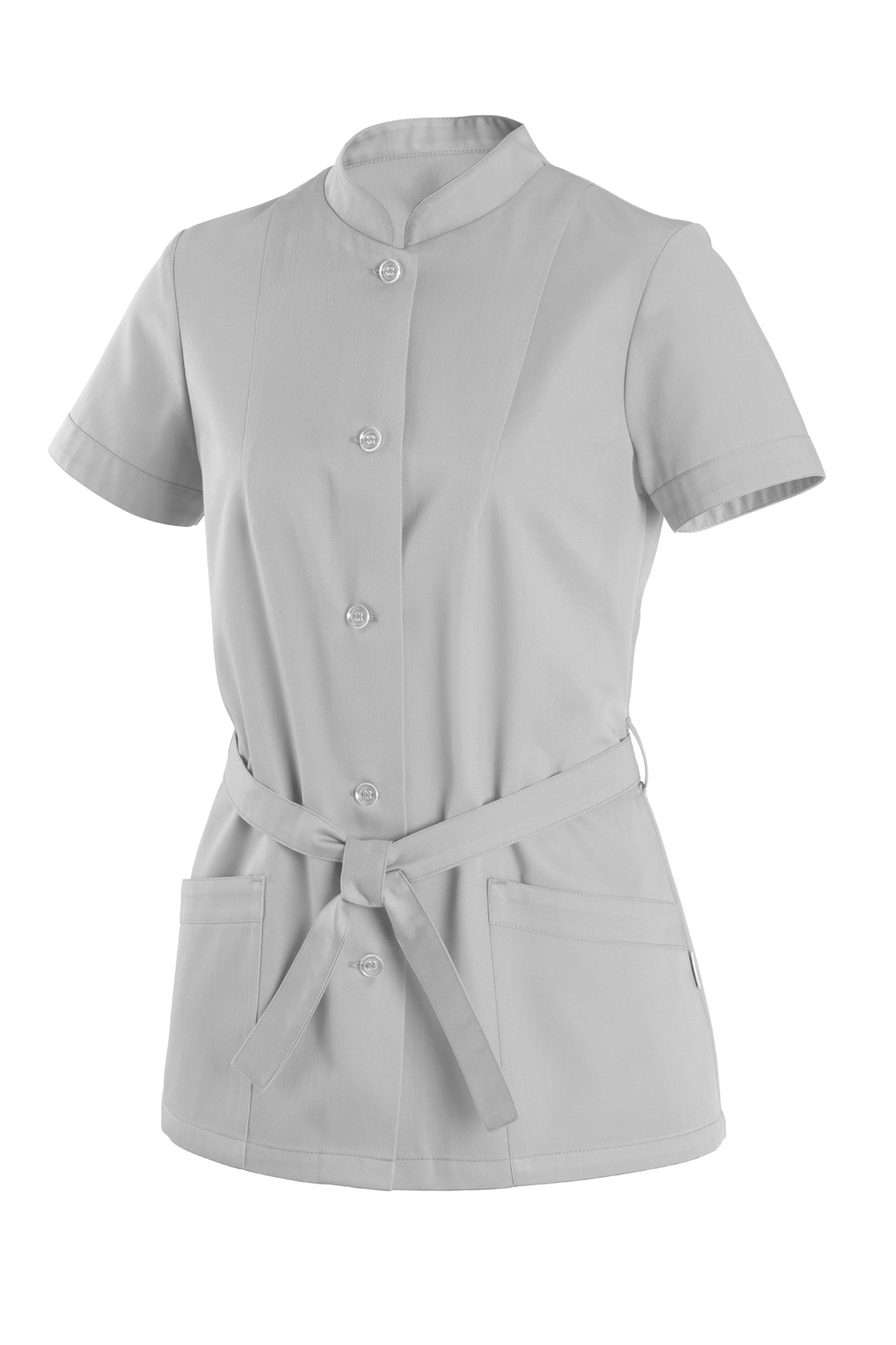 Volného střihu se stojáčkem a lemovaným rukávem. Celopropínací, v pase s vázačkou a prsní ramenní záševky. Na předním díle dvě našité kapsy s lemováním.