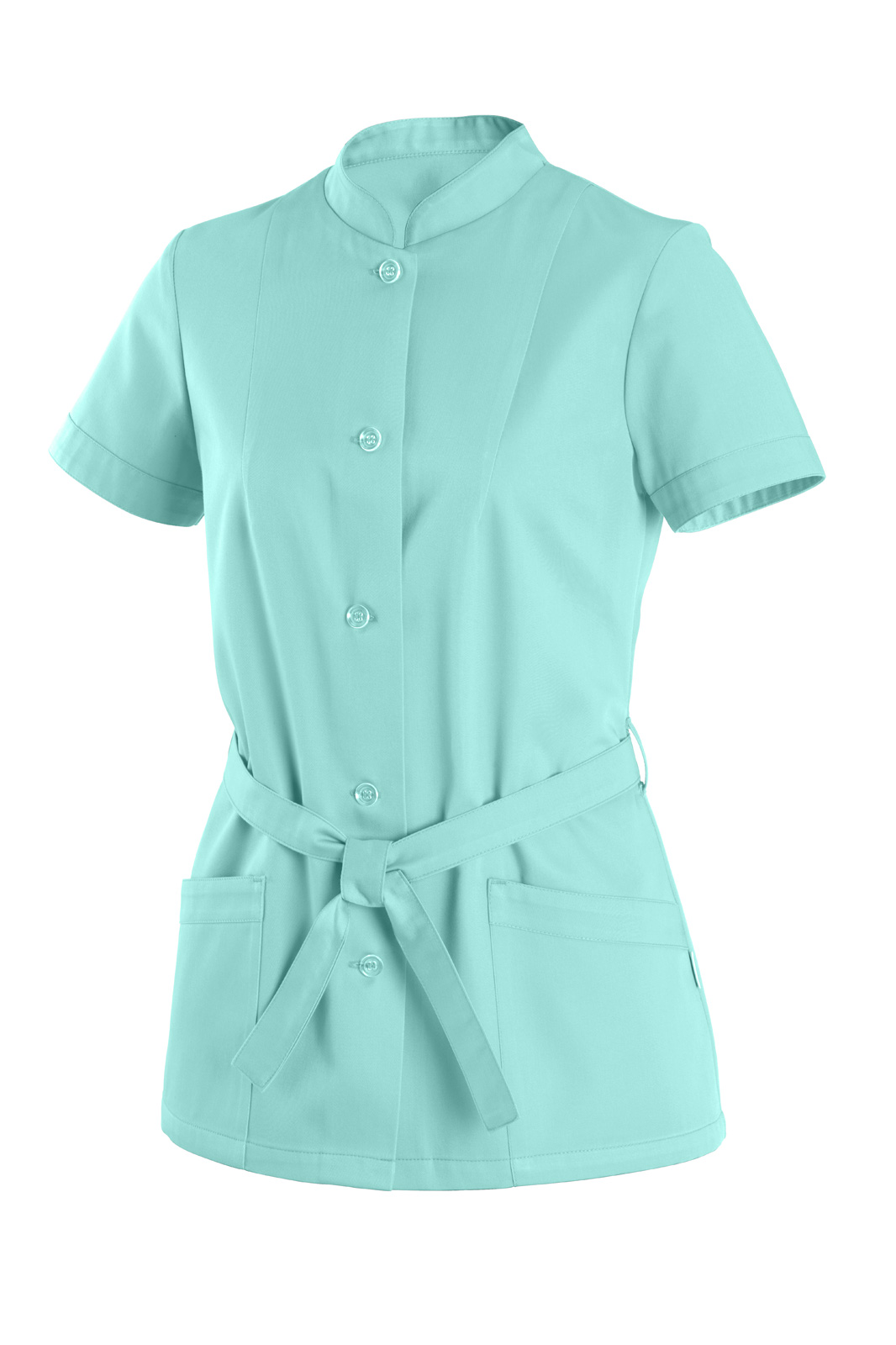 Volného střihu se stojáčkem a lemovaným rukávem. Celopropínací, v pase s vázačkou a prsní ramenní záševky. Na předním díle dvě našité kapsy s lemováním.