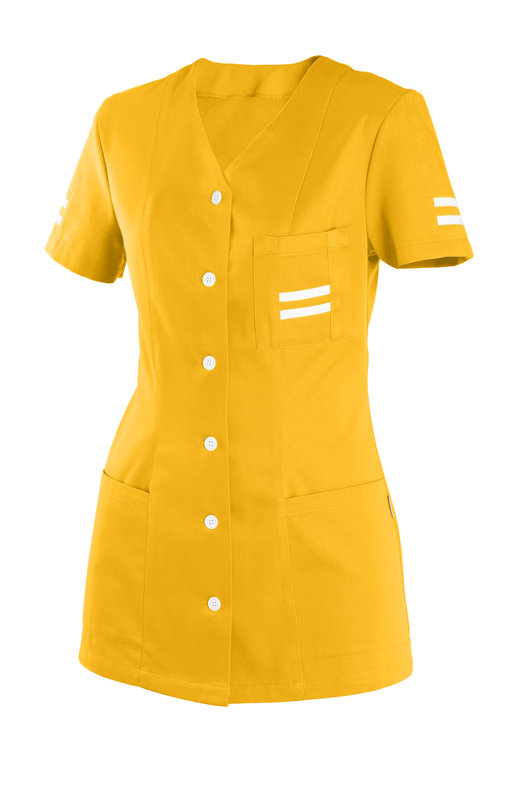 Princesového střihu s krátkým prostřiženým rukávem. Zapínání na knoflíky, výstřih do V a na předním díle tři našité kapsy. Rukáv a náprsní kapsa s barevnými lampasy.