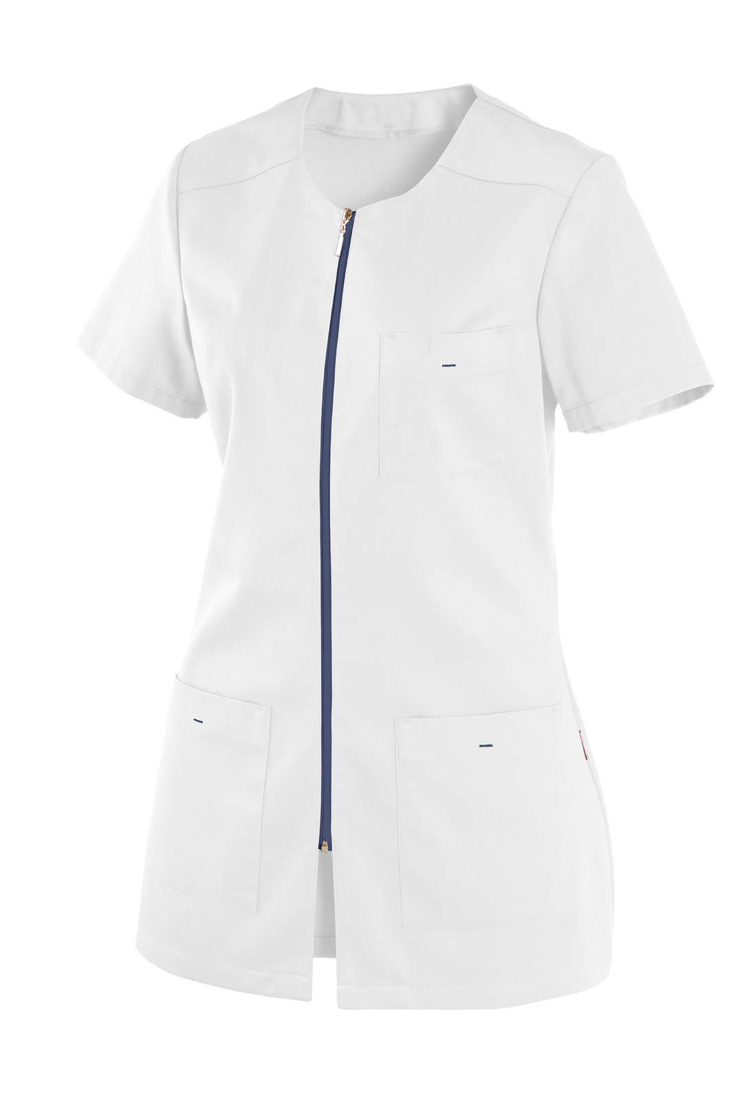 Volného střihu, celopropínací na zip s krátkým rukávem. Prsní záševky, na předním díle krátké sedlo a tři našité kapsy. Vínový zip a rýgle na kapsách.