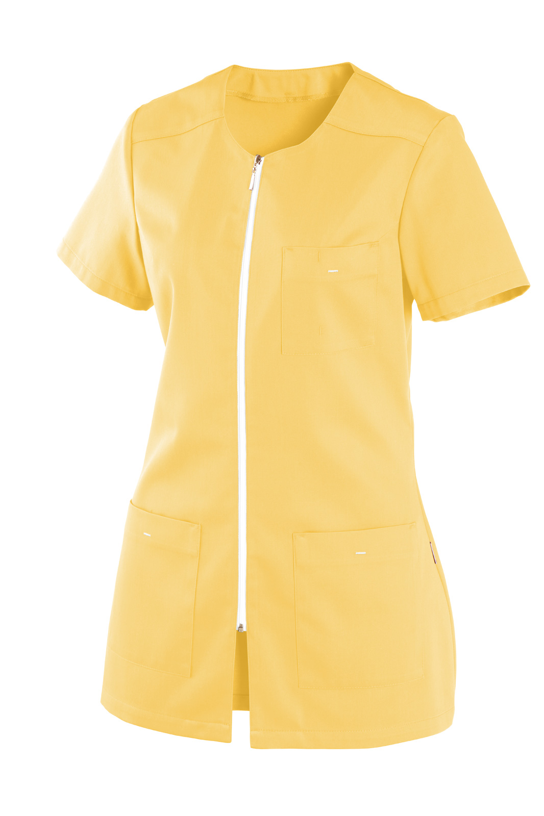 Volného střihu, celopropínací na zip s krátkým rukávem. Prsní záševky, na předním díle krátké sedlo a tři našité kapsy. Bílý zip a rýgle na kapsách.