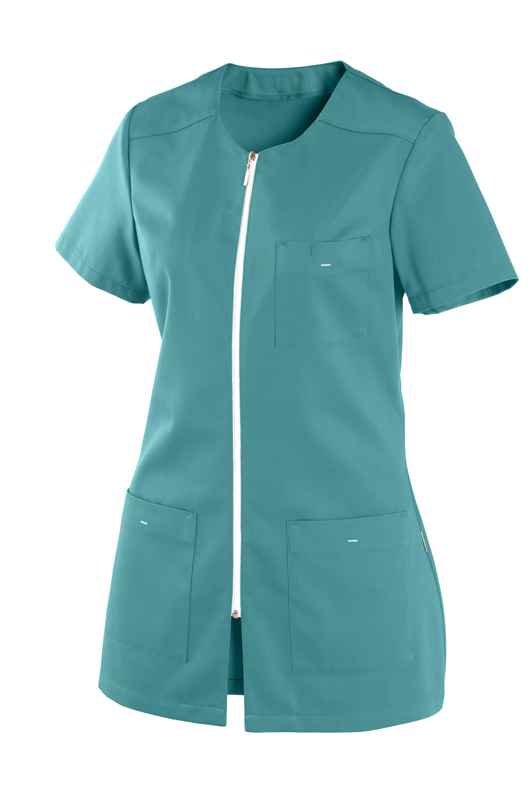 Volného střihu, celopropínací na zip s krátkým rukávem. Prsní záševky, na předním díle krátké sedlo a tři našité kapsy. Bílý zip a rýgle na kapsách.