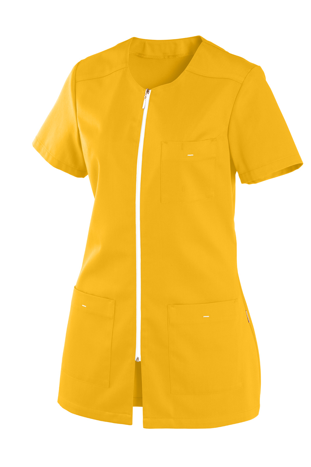 Volného střihu, celopropínací na zip s krátkým rukávem. Prsní záševky, na předním díle krátké sedlo a tři našité kapsy. Tm. zelený zip a rýgle na kapsách.