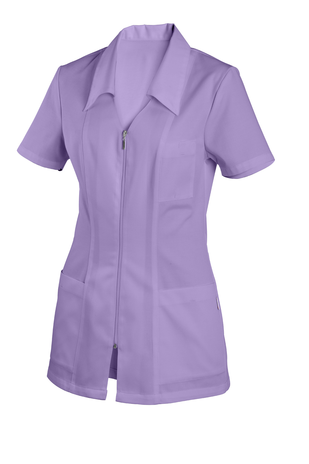 Princesového střihu, celopropínací na zip s krátkým rukávem. Výstřih do V s límečkem. Na předním díle tři našité kapsy.