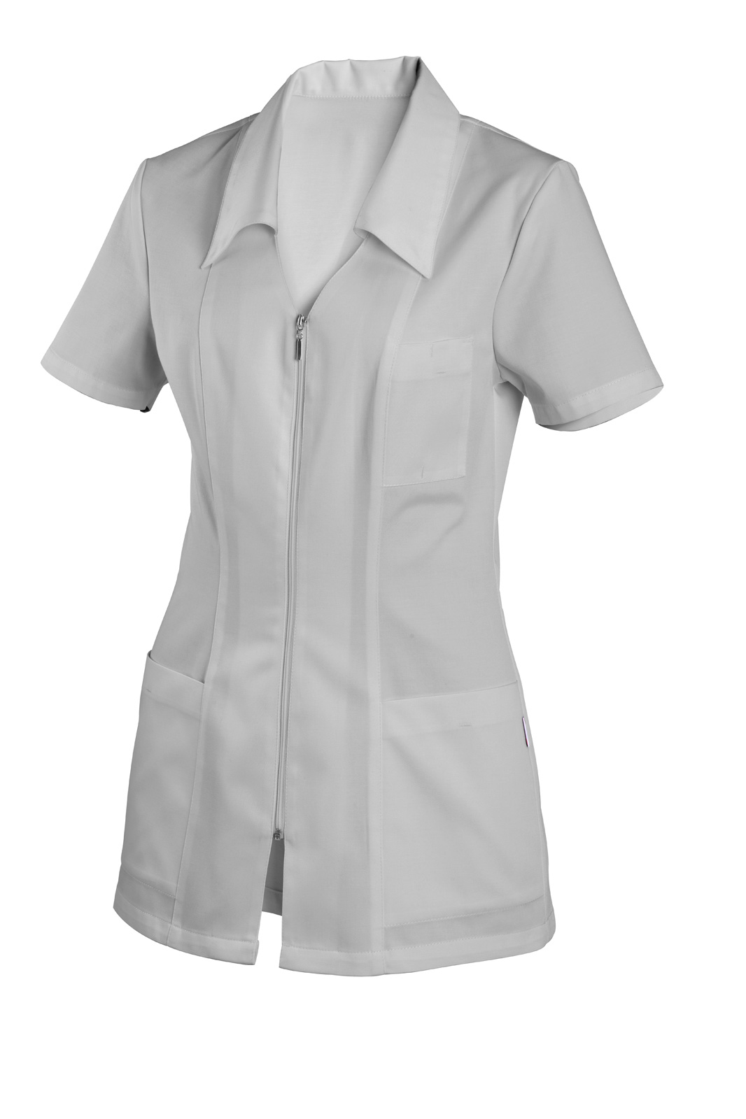 Princesového střihu, celopropínací na zip s krátkým rukávem. Výstřih do V s límečkem. Na předním díle tři našité kapsy. Tm. zelený zip.