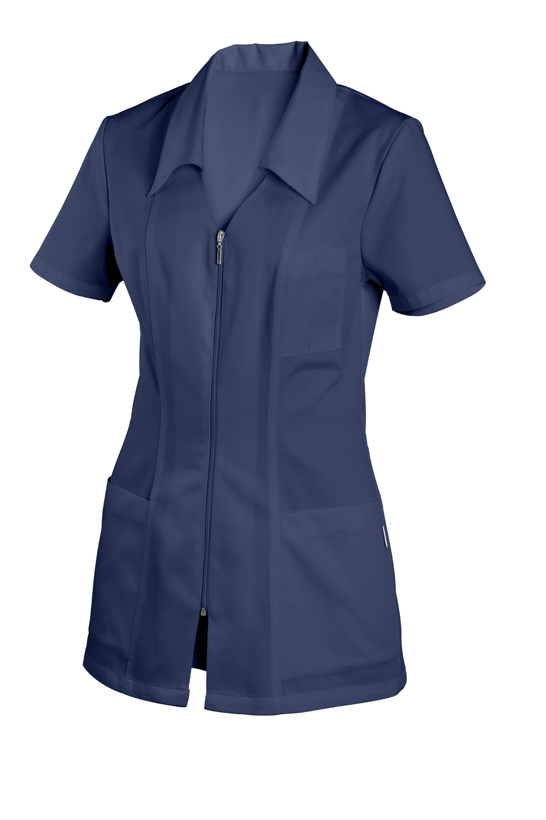 Princesového střihu, celopropínací na zip s krátkým rukávem. Výstřih do V s límečkem. Na předním díle tři našité kapsy. Bílý zip.