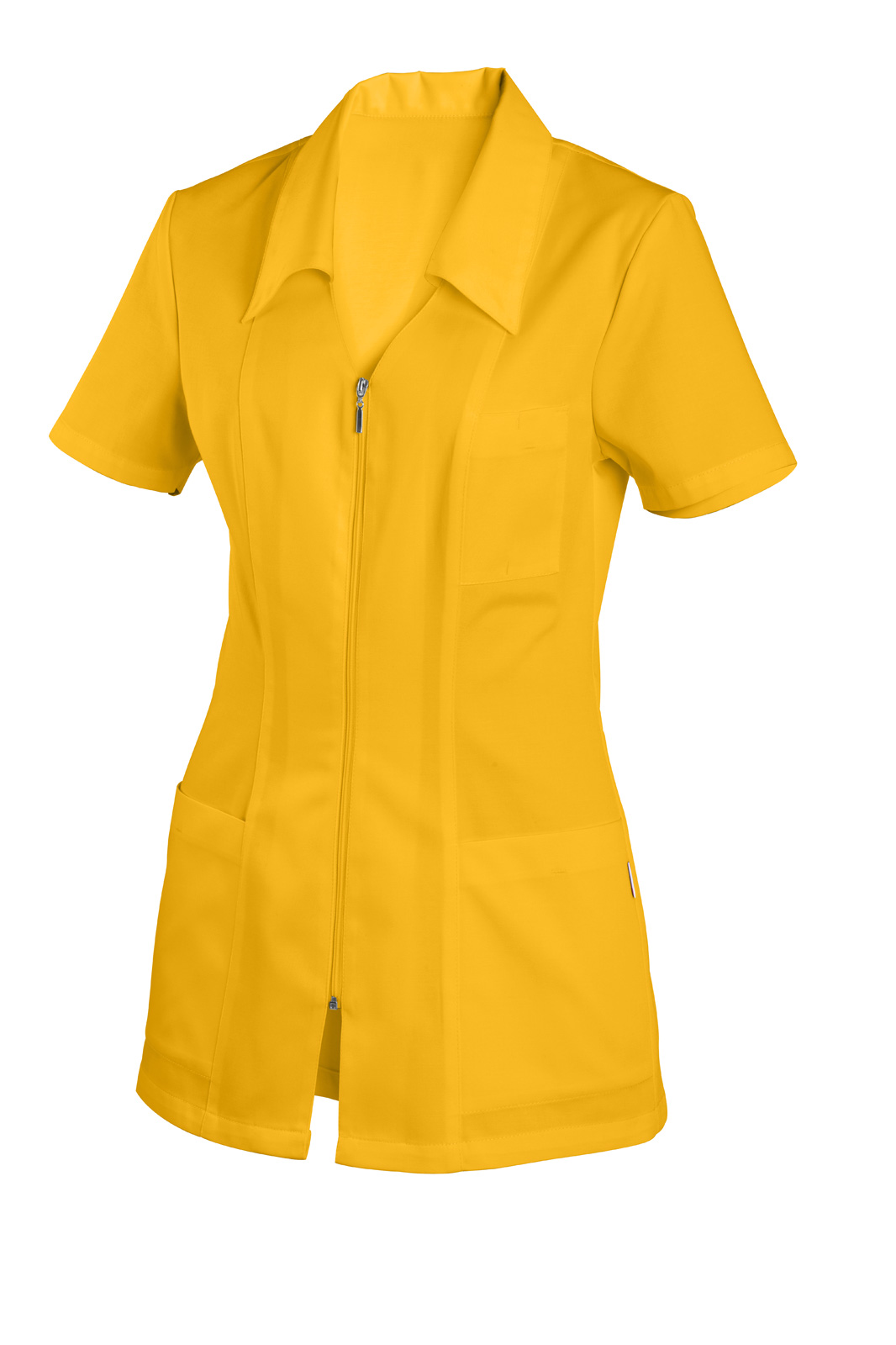 Princesového střihu, celopropínací na zip s krátkým rukávem. Výstřih do V s límečkem. Na předním díle tři našité kapsy. Bílý zip.