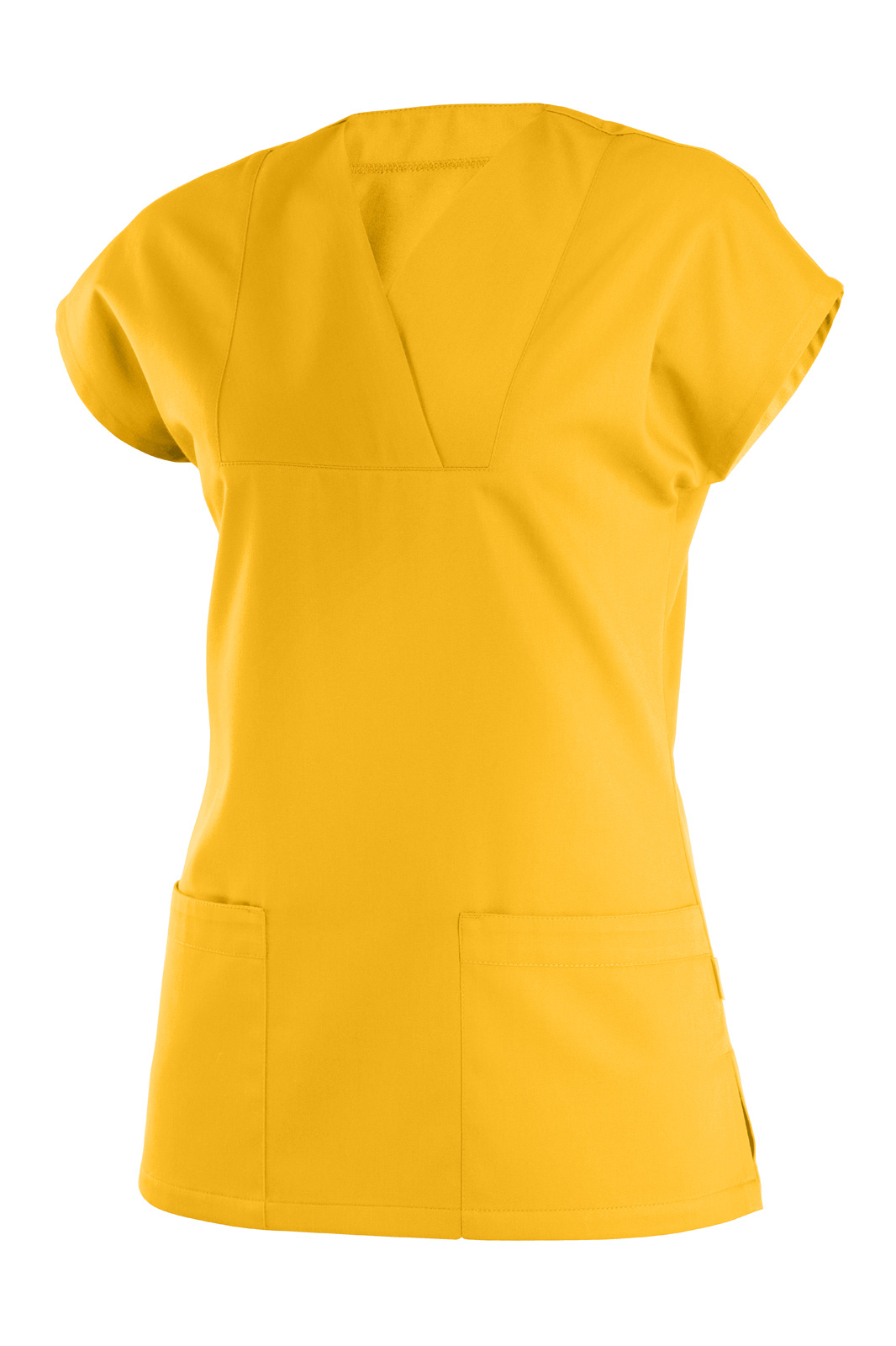 Volného střihu a kimono rukávem. Vsazený, přeložený výstřih do tvaru V a na předním díle dvě našité kapsy s lemem.