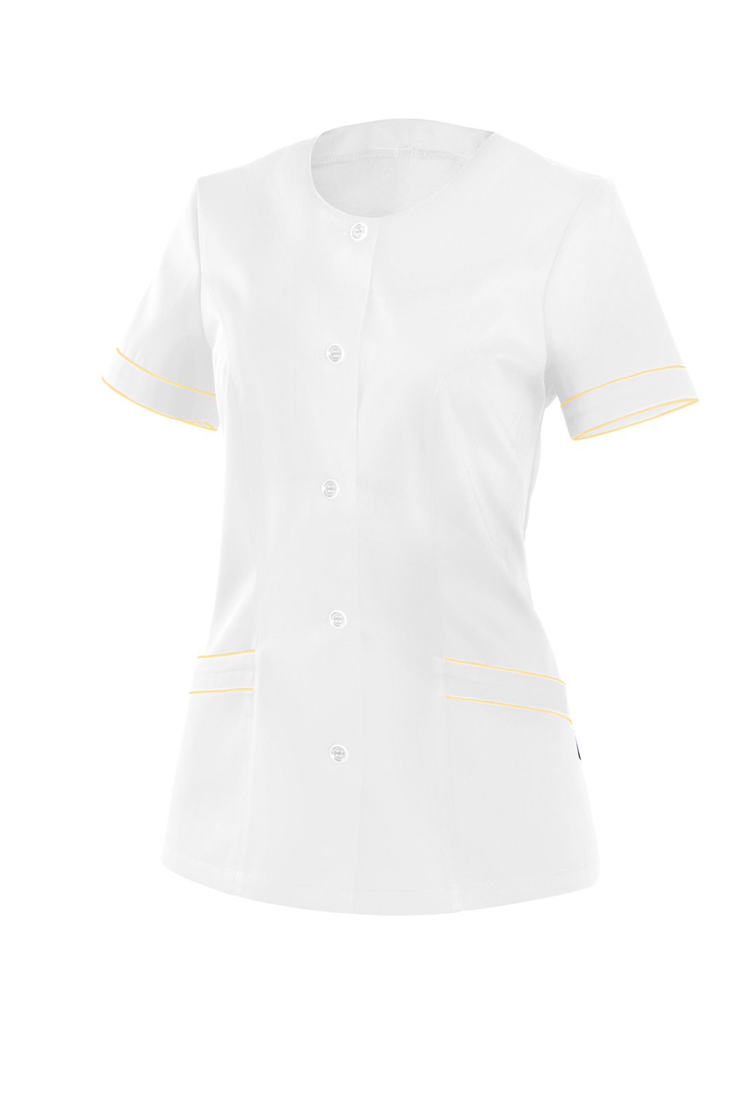 Princesového střihu, zapínání na knoflíky a krátký rukáv s lemem. Na předním díle dvě našité kapsy s lemem. Ve středu zadního dílu dragoun. Rukáv, kapsy i dragoun jsou zdobeny všitou dutinkou doplňkové barvy.