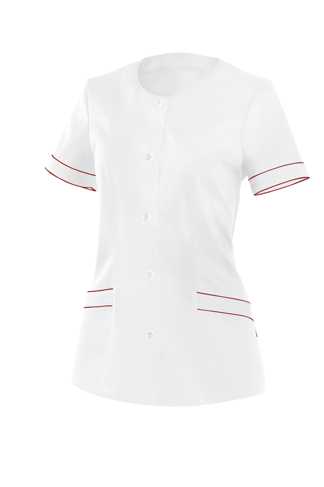 Princesového střihu, zapínání na knoflíky a krátký rukáv s lemem. Na předním díle dvě našité kapsy s lemem. Ve středu zadního dílu dragoun. Rukáv, kapsy i dragoun jsou zdobeny všitou dutinkou doplňkové barvy.