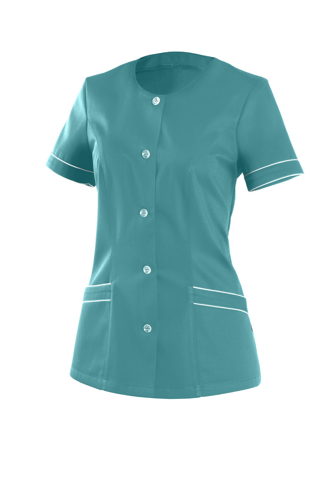Princesového střihu, zapínání na knoflíky a krátký rukáv s lemem. Na předním díle dvě našité kapsy s lemem. Ve středu zadního dílu dragoun. Rukáv, kapsy i dragoun jsou zdobeny všitou dutinkou doplňkové barvy.