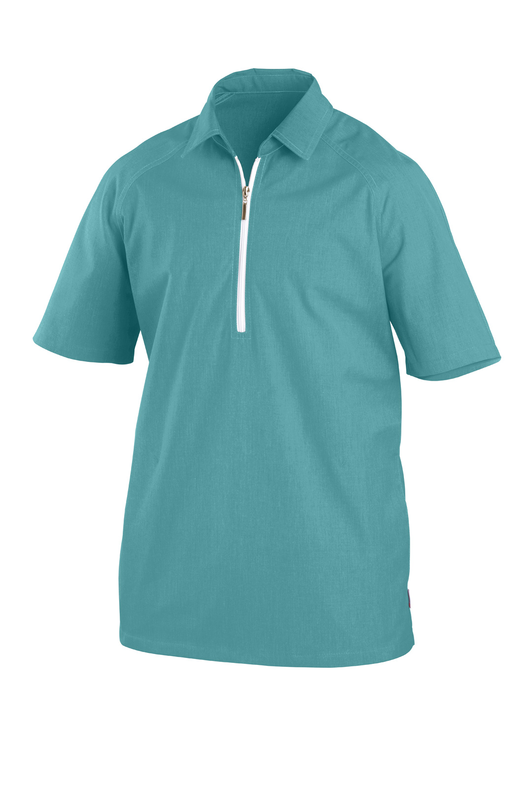 S raglánovým rukávem, v průkrčníku všitý límec se stojáčkem. Na předním díle krátký zip ke krku a dvě kapsy ve švu.