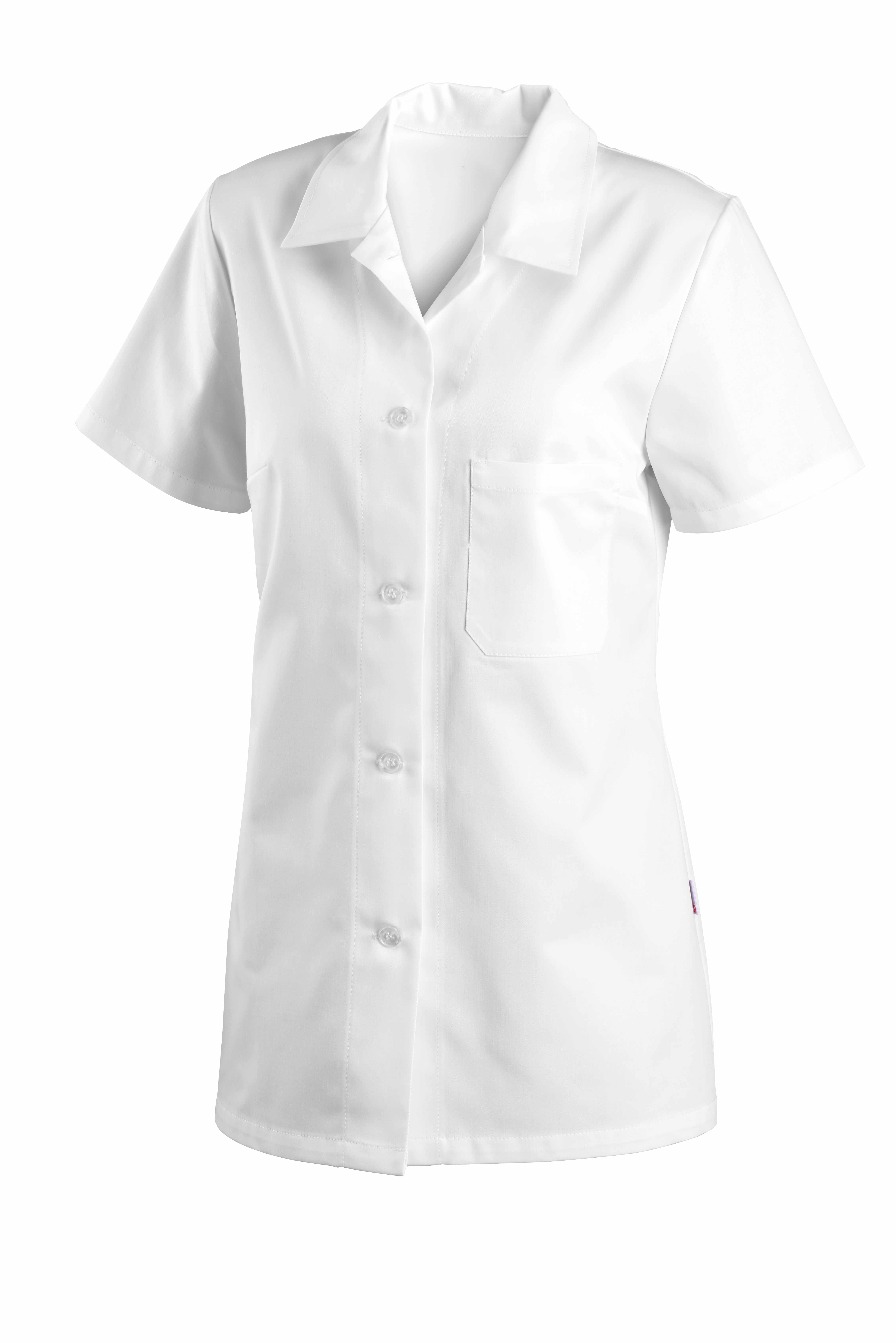 Volného střihu s krátkým rukávem a rozhalenkou. Na předním díle náprsní kapsa a prsní záševky.