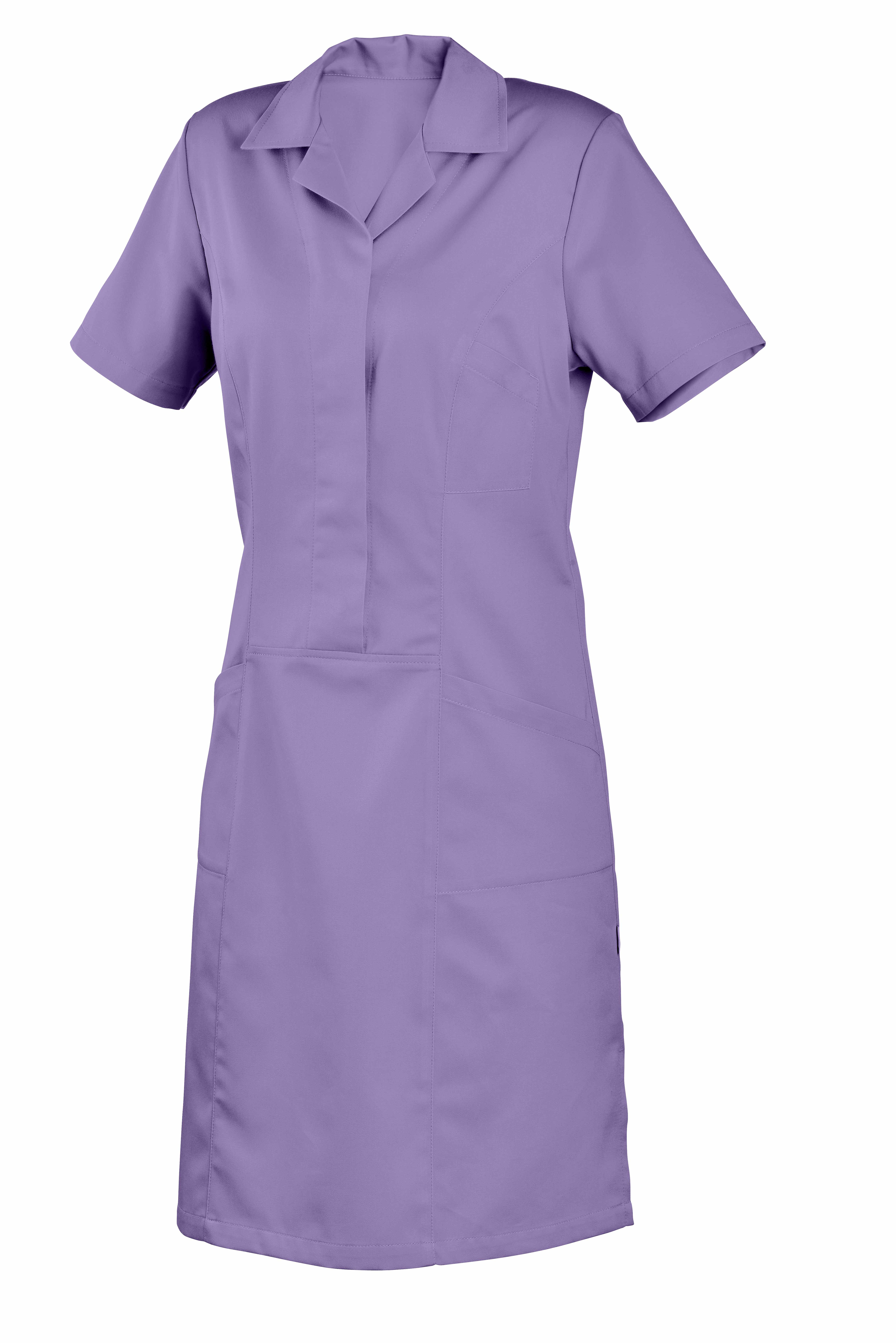 Princesového střihu na předním díle, s krytým propínáním do sníženého pasu, krátkým rukávem a rozhalenkou. Na předním díle jedna náprsní a dvě spodní našité kapsy.