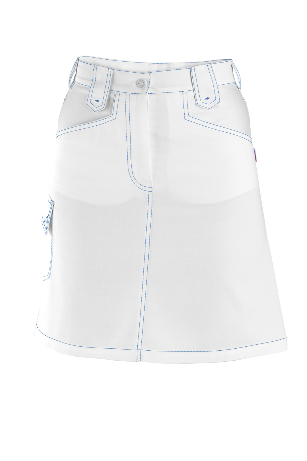 Riflového střihu, na předním díle dvě vnitřní kapsy. Na pravé boční straně našitá kapsa s patkou. Přední poutka i patka zdobené barevnou výšivkou. Barevné štepování.