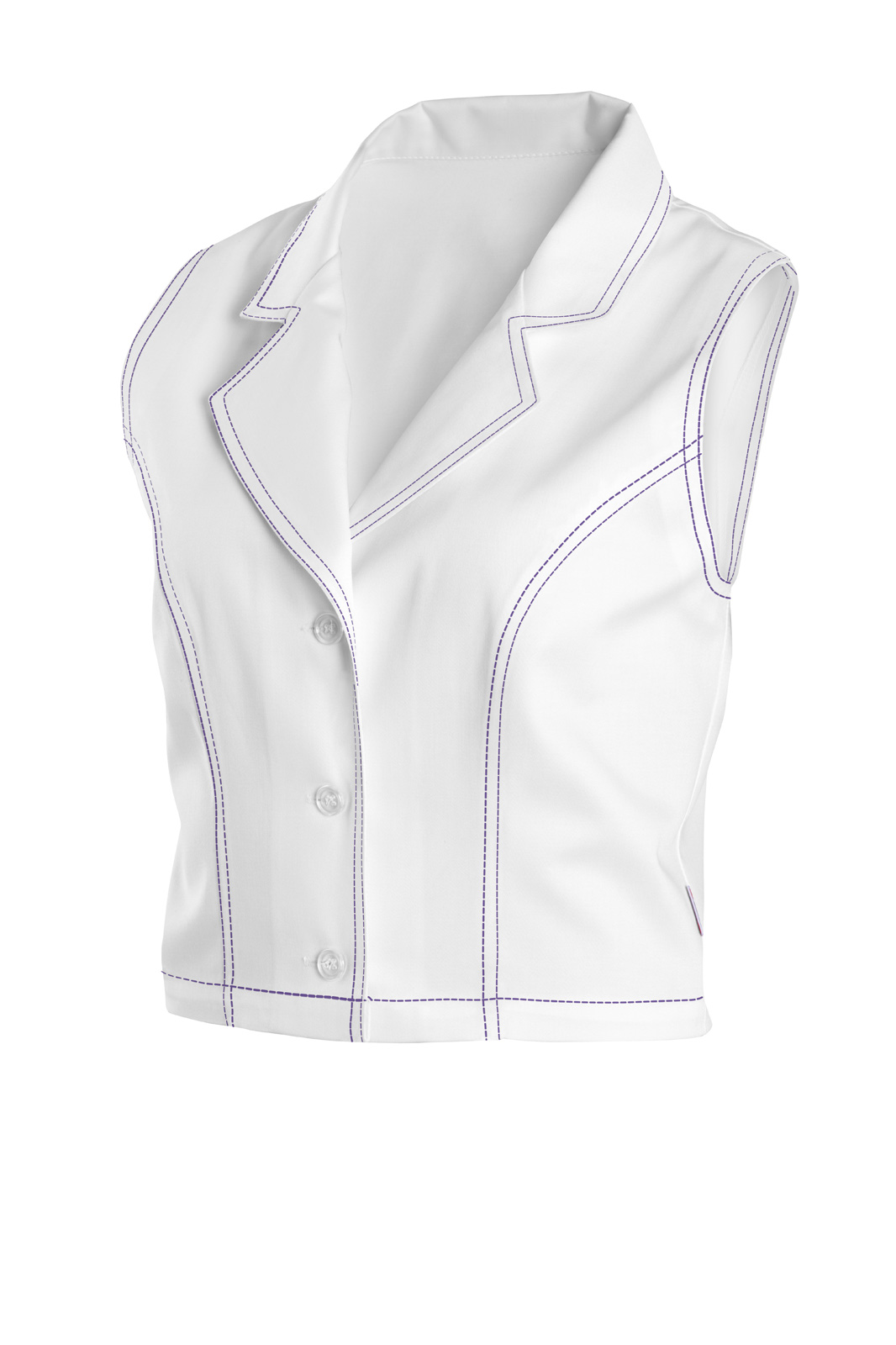 Princesového střihu do pasu, výstřih s fazonou. Tři knoflíky, štepování.