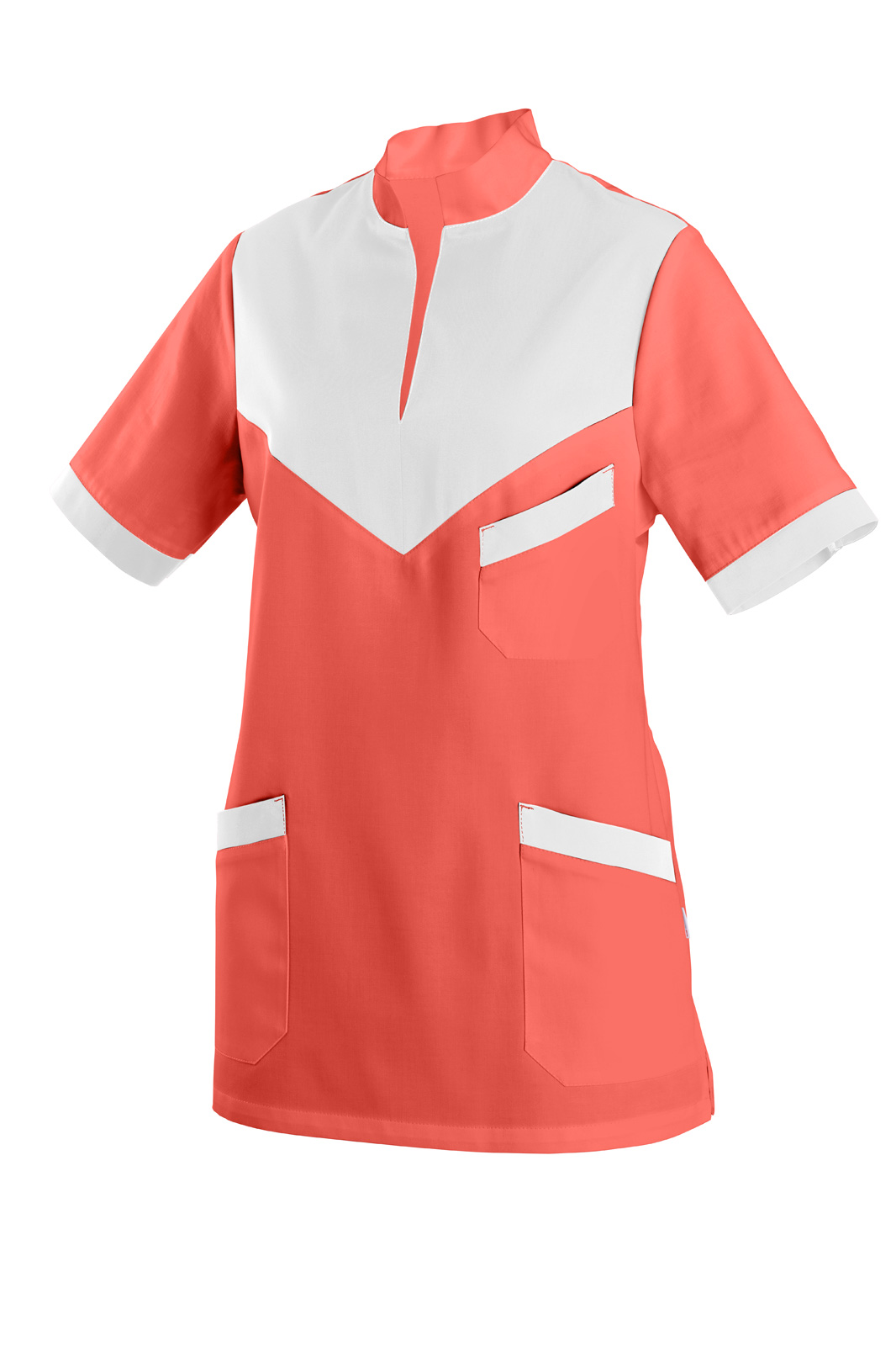 Women´s smock with slits on the sides ALINDA salmon red/white