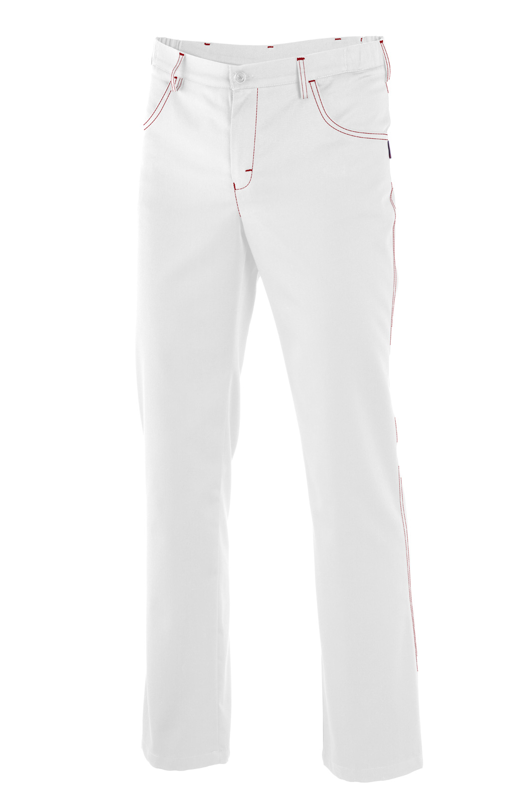 Men´s pants GUDRUN I white/burgundy red backstitch