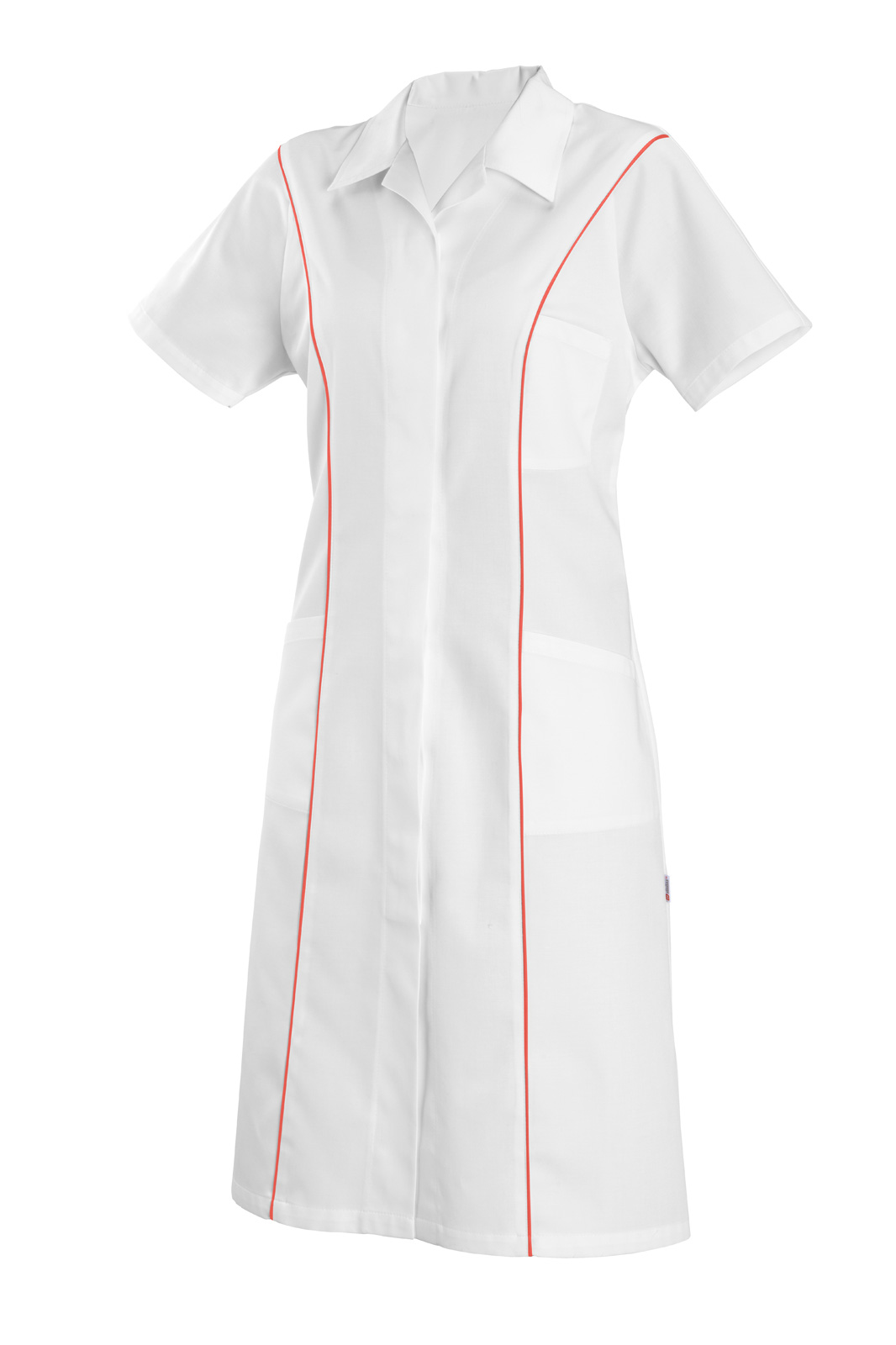 Women´s dress JOVITA white/salmon red textile piping
