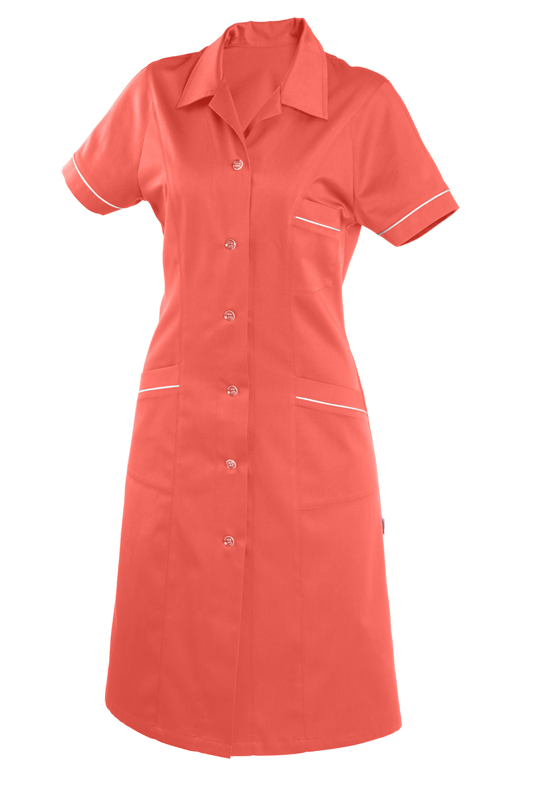 Women´s dress VIENNA salmon red/white textile piping